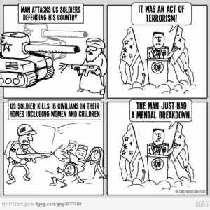 | podobny pripad sa stal aj v iraku ked po bombovom utoku na americke vozidlo sa americky vojaci isli pomstit a vystrielali niekolko irackych rodin. [odkaz] |