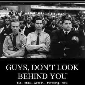 George Lincoln Rockwell flanked by members of the American Nazi Party, at a meeting of the Black Muslim movement. |