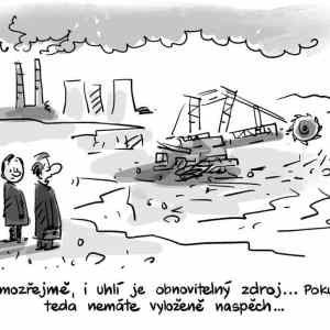 Pokud autor vtipu myslel to uhlí, co se kutá ze země, tak to opravdu obnovitelný zdroj není, ani kdyby se na hlavu stavěl |