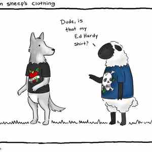 | jonatan1024: Jak napsal kolega Moric (mimochodem, Úžasný Móric a jeho vzdělaní hlodavci?) - Vlk v rouše (nebo oblečení) beránčím - tedy vlk má na sobě tričko, který patří tý ovci (její oblečení) | ||