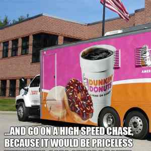 | Cpt in: O policajtech v Americe se rika, ze se porad akorat cpou "donut"ama (takova kobliha ve tvaru venecku) a pijou kafe. A ze kdyz videj donut, tak proste neodolaj... takze kdyby ho polisi honili v tomhle aute a bylo to v telce, kazdej by uchcaval smichy. Cpt out. | ||