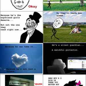 dostal ma, ten silent guardian. presne takto chodi v mojom živote, ja som ten živý forever alone človek |