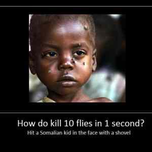 Nejhorší je, že když mu jí fláknete přes tu špinavou hubu, tak zabijete ty nevinný mouchy. |