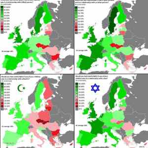Pořád a pořád se tu tenhle, již pár let starý obrázek bude opakovat dokola. Otázka v ČR/SR - jste rádi, že vedle vás žije žid/musilm... u zbytku to bylo "zda vám to nevadí" |
