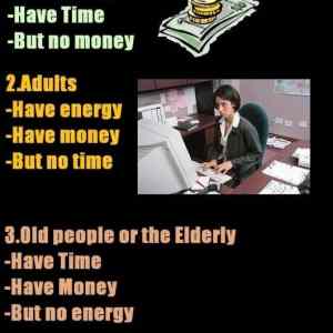 Neplatí to úplně, některé děti mají peníze, někteří dospělí mají čas a někteří staří mají energii. |